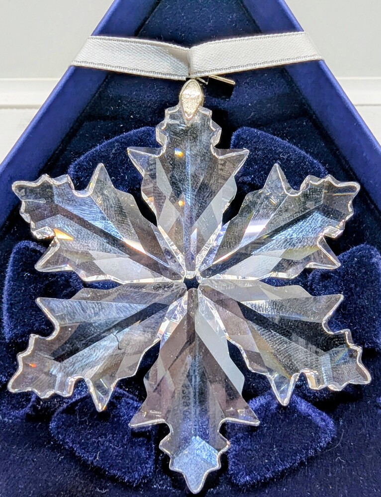 Included: Swarovski 5059026 ornament with white satin hanger and tag engraved with the year issued, paperwork original box.