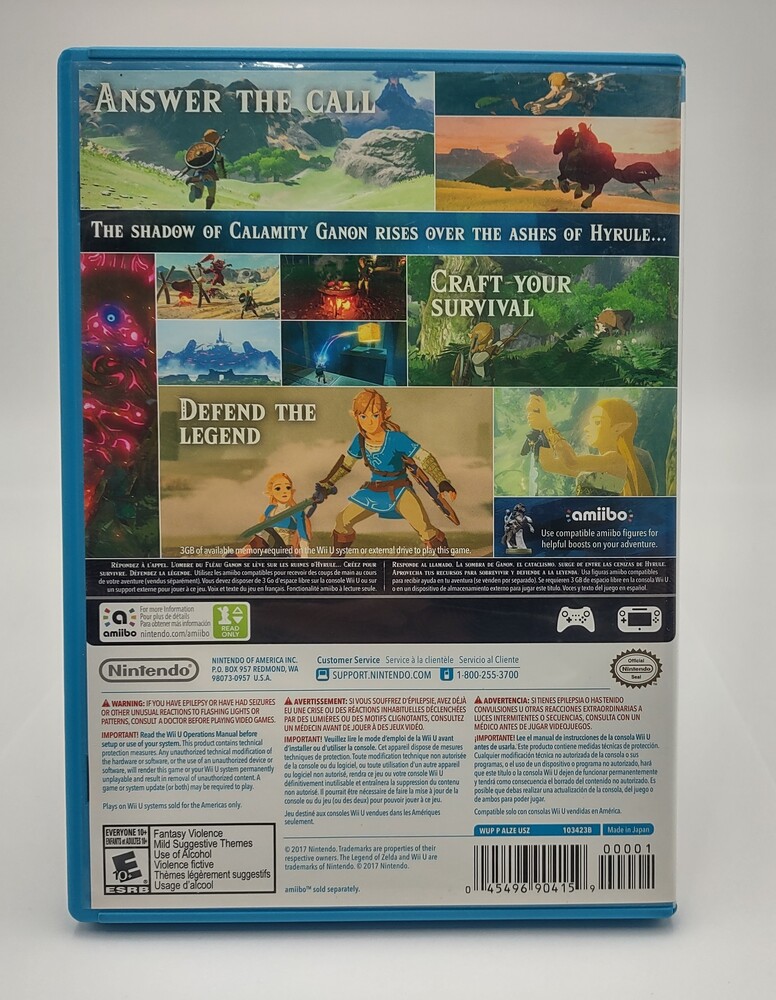 The Legend Of Zelda: Breath of the Wild game for the Nintendo Wii U (2017) with original case, cover, and insert.