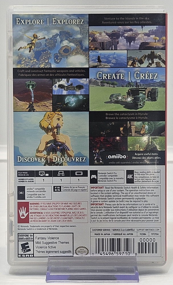 An epic adventure across the land and skies of Hyrule awaits in the Legend of Zelda: Tears of the Kingdom game for the Nintendo Switch system. The adventure is yours to create in a world fueled by your imagination. In this sequel to The Legend of Zelda: Breath of the Wild, you'll decide your own path through the sprawling landscapes of Hyrule and the mysterious islands floating in the vast skies above. Can you harness the power of Link's new abilities to fight back against the malevolent forces that threaten the kingdom?