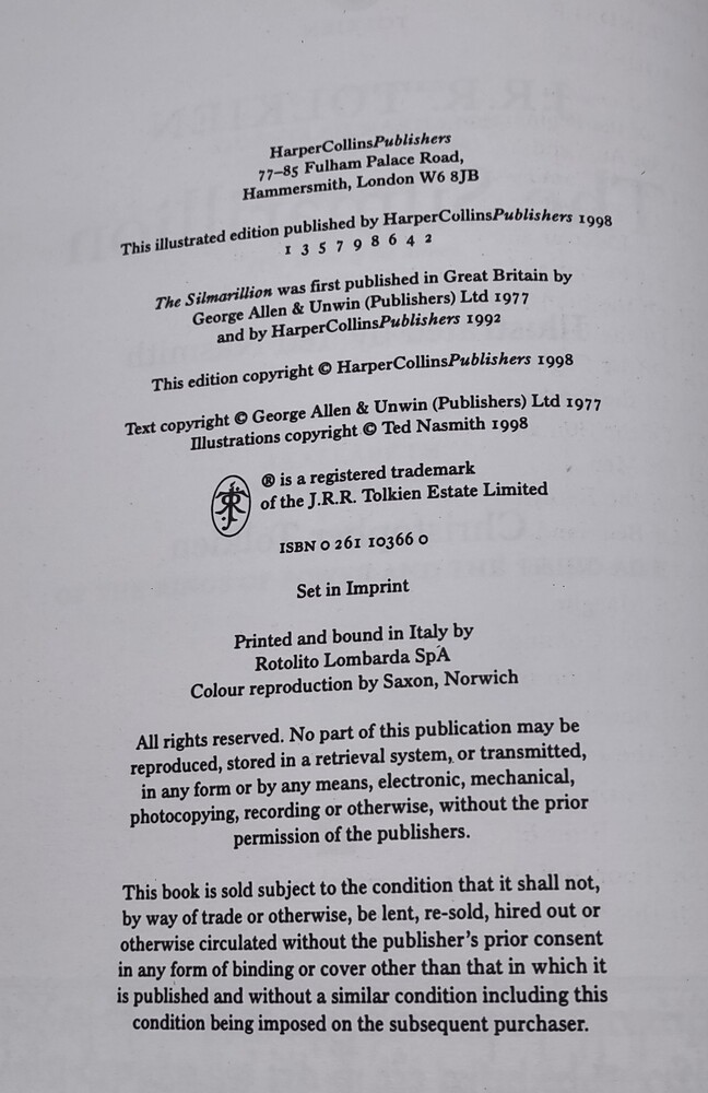 The Silmarillion by J.R.R. Tolkien - Hardcover 1998 Ted Nasmith Illustrator | Avenue Shop Swap & Sell