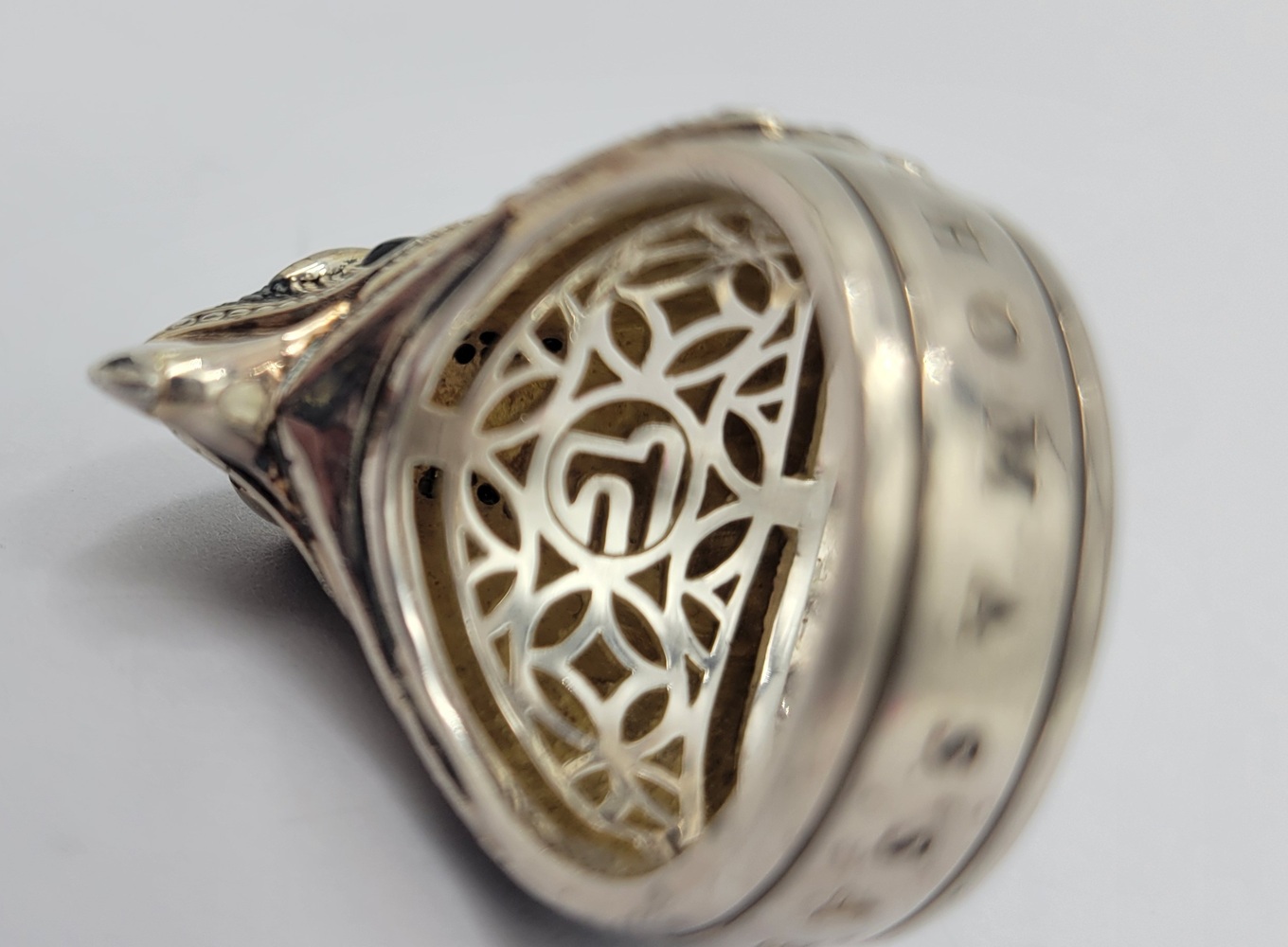 The ring in this listing shows signs of previous enjoyment. The box seen in photos is NOT included in the listing.