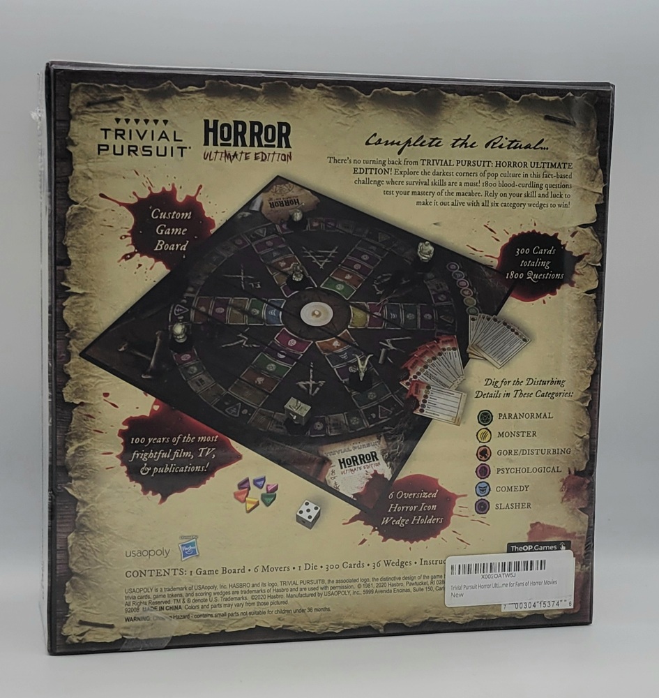 Uncover the macabre mysteries of Trivial Pursuit Horror Ultimate Edition. With chilling words that twist your mind through ghoulish trivia, this game isn't for the faint-hearted! We dare you to dive into this eerie pursuit, riddled with bone-chilling questions, and bloody entertaining facts. Enjoy, if you dare...NIP!