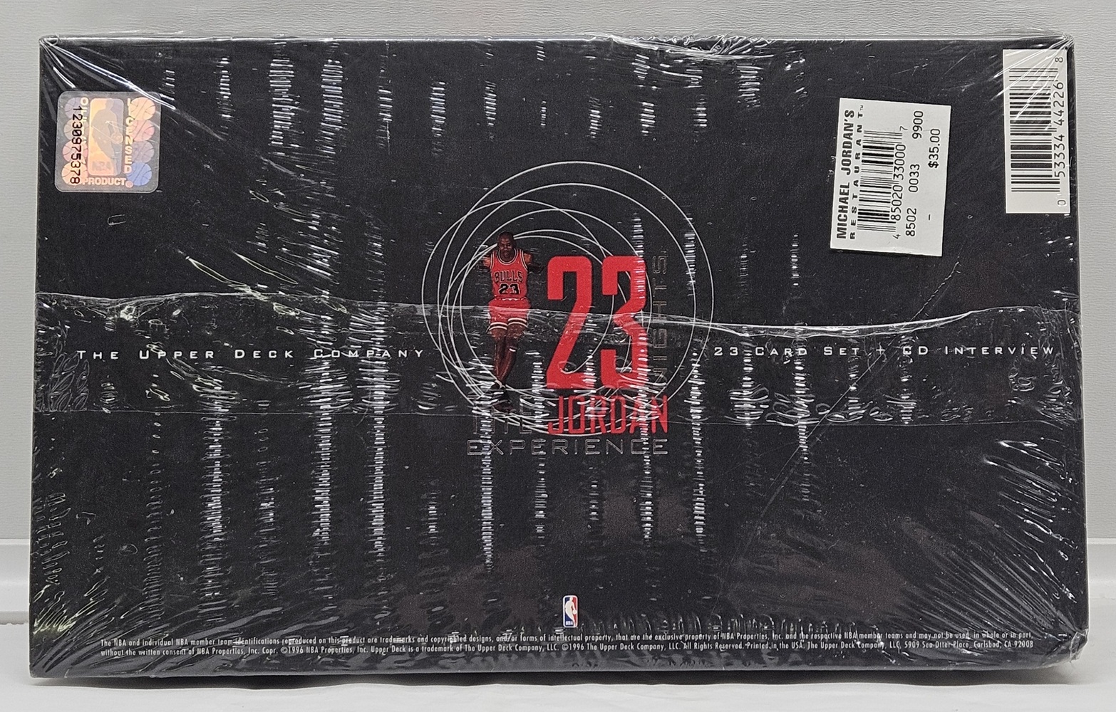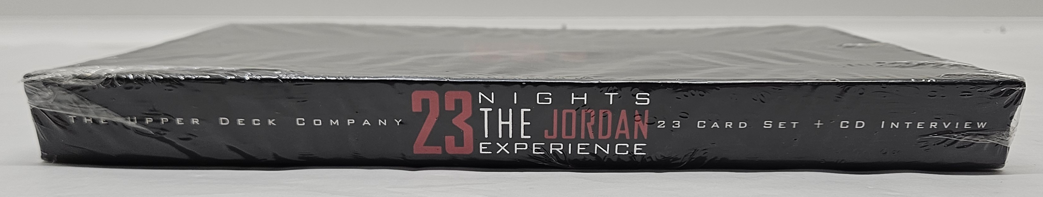 The product is a collector's item set from Upper Deck, titled "23 Nights The Jordan Experience" featuring Michael Jordan from the Chicago Bulls. This vintage set includes 23 cards and a CD interview, all originating from 1996. The cards are part of the National Basketball Association (NBA) league, making them a valuable piece for basketball fans and collectors alike. The set offers a unique glimpse into the career and legacy of Michael Jordan, a legendary player in the sport of basketball.