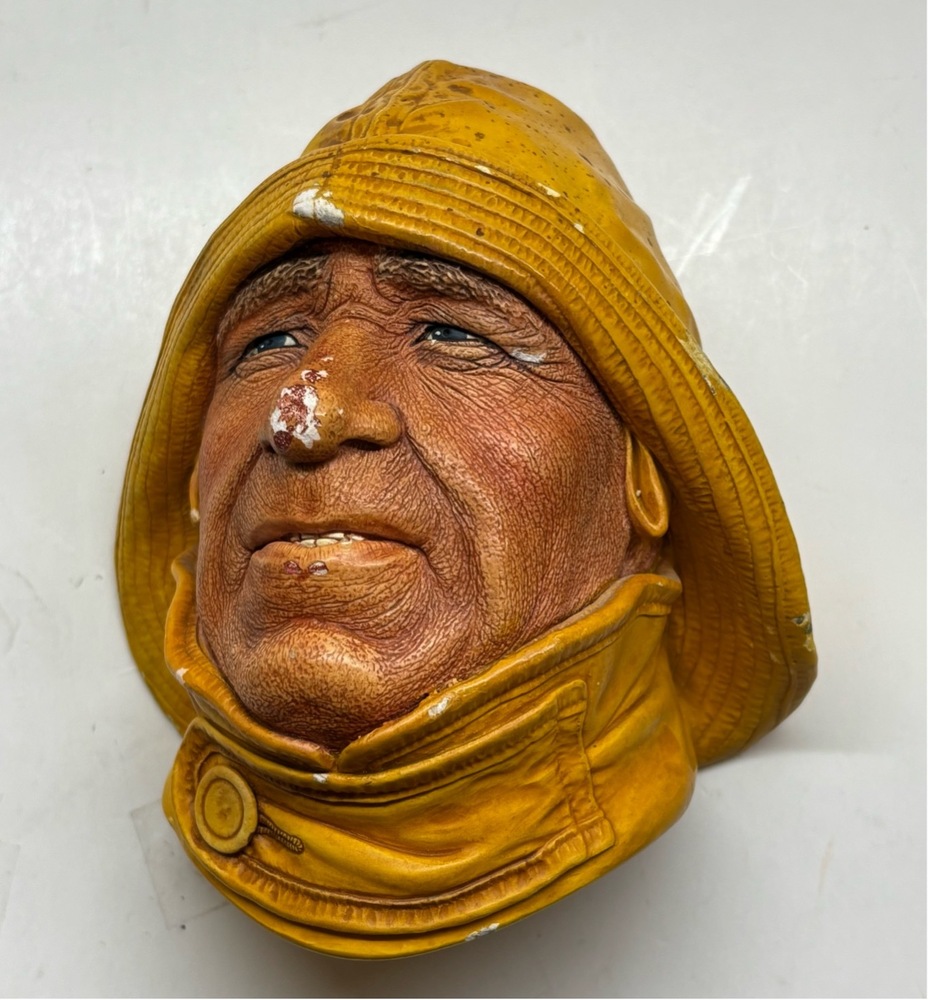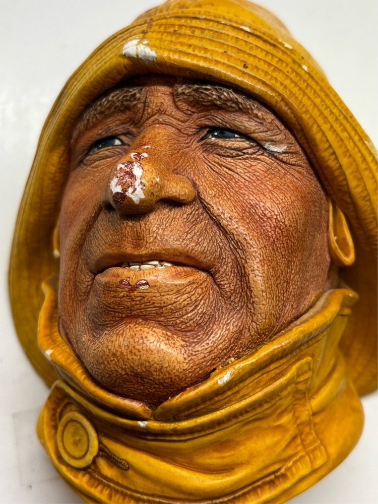Discover the charm of yesteryears with this 1965 vintage Bossons England Life Boatman Chalkware Head Wall Plaque. Intricate details crafted from chalkware make this wall-mounted plaque a unique time piece. A superb addition for lovers of maritime memorabilia, it adds a nostalgic nuance to any wall it graces. Claim this rustic bust today!