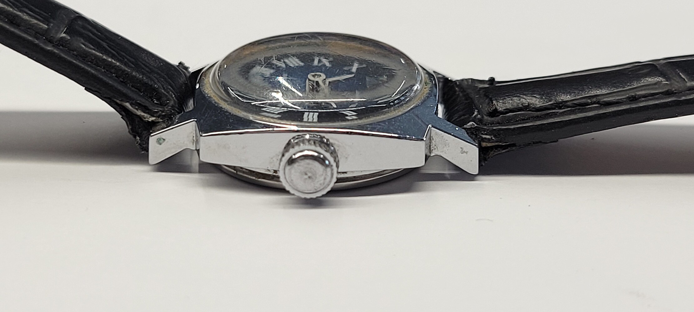 This listing is for one vintage Timex ladies mechanical watch. The watch is in very good pre-owned condition and good working order. The reference number for this time piece is 5531002375. Strap is genuine leather.