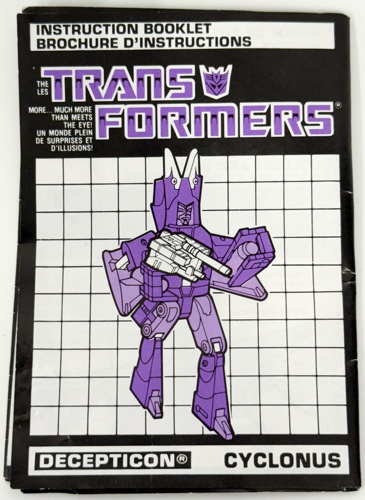 This listing includes the Cyclonus figure, the Targetmaster Nightstick/pilot, and manual.