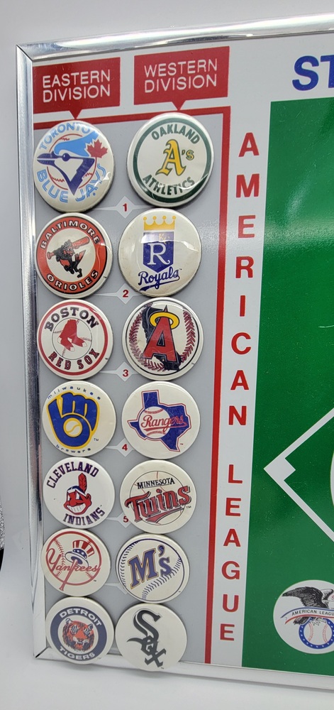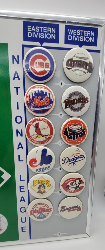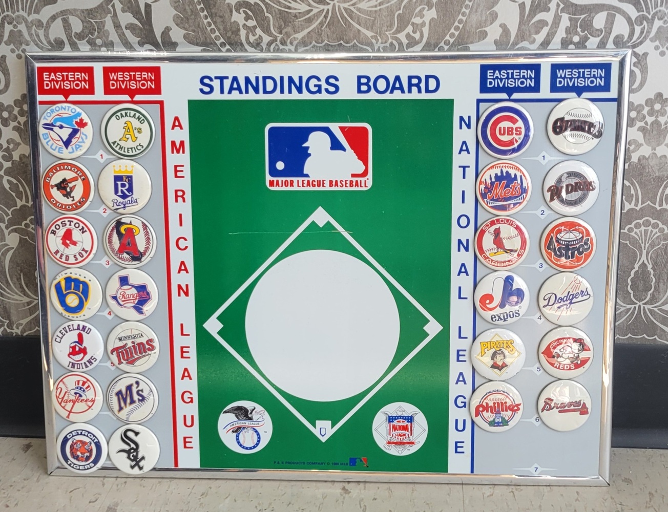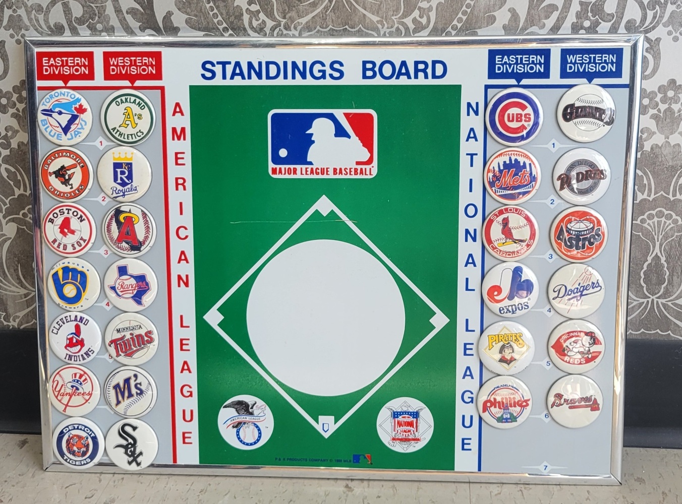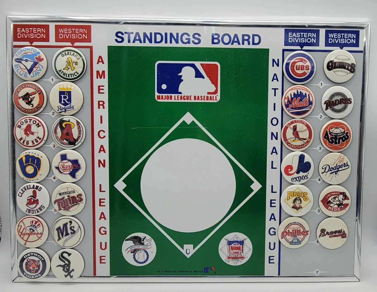 Step back in time with this authentic 1989 MLB Standings Board from P&K Products Co. Unleash the nostalgic vibe as you display team rankings with the original magnets. A magnetic mishmash chronicle of baseball history, it's an absolute vintage treasure for any MLB fanatic.