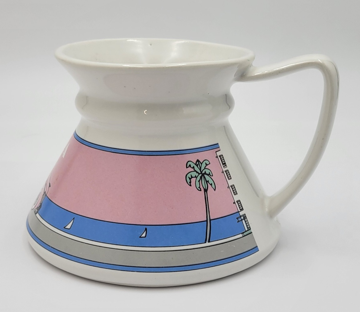 Experience a vibrant 80's throwback with this unique, Vintage Funky Florida mug. Distinctively designed with pink hues, palm trees, and tropical vibes, it’s a time machine to the sunshine state’s retro style. A limited edition, get transported to sandy beaches with each steaming sip. More than a mug, it's nostalgia served hot!