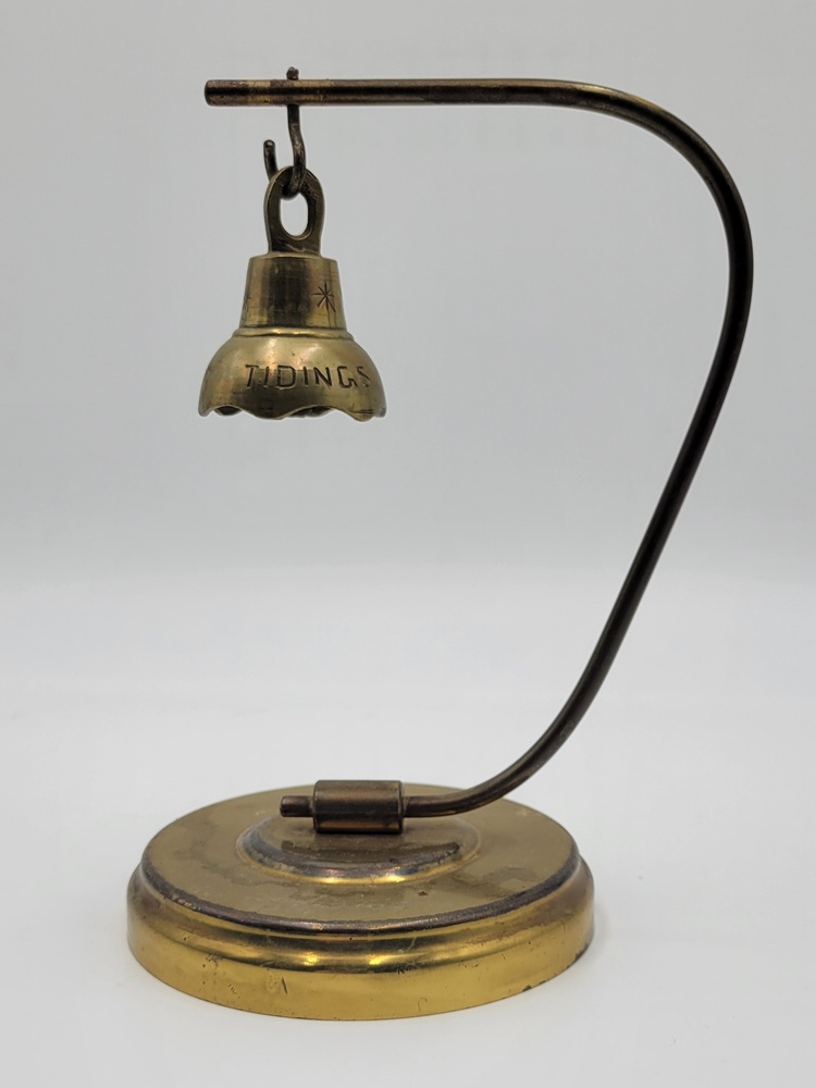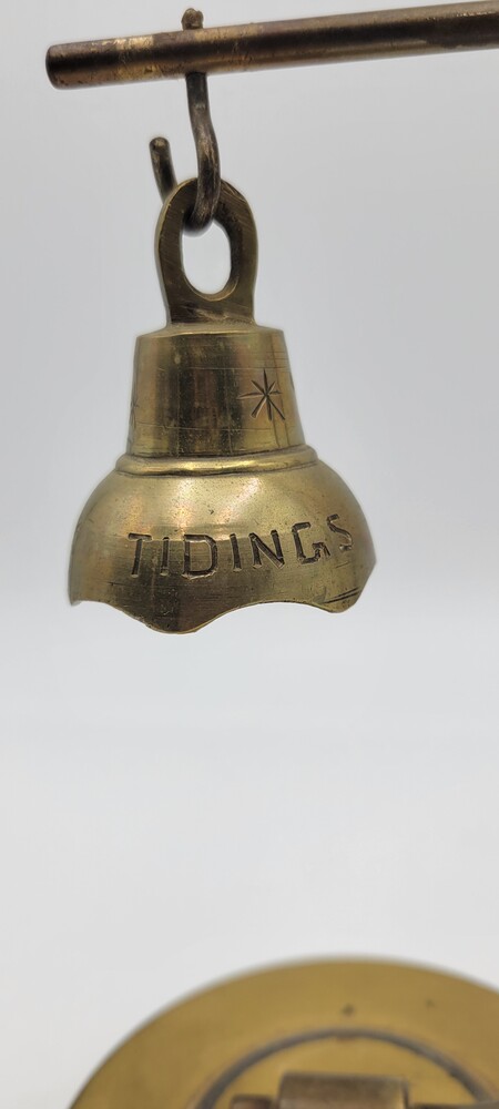 Experience the joyous clinking of Yuletide cheer with this exquisite Glad Tidings Christmas bell. Perched elegantly on its own stand, it's a timeless symbol of holiday warmth and festivity, a must-have collectible for avid ornament enthusiasts.