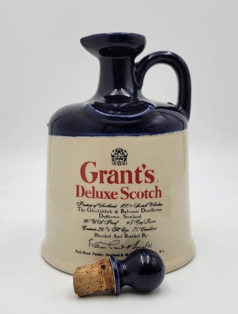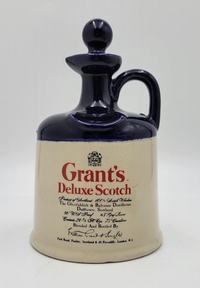 Unveil a beacon of sophistication with this vintage Grant's Deluxe Scotch Glazed Stoneware Decanter. Dating back to the golden era, its timeless charm narrates a scintillating journey of liquor legacy. It's more than a collectible, it's a treasure chest of untold tales over tipsy talks!