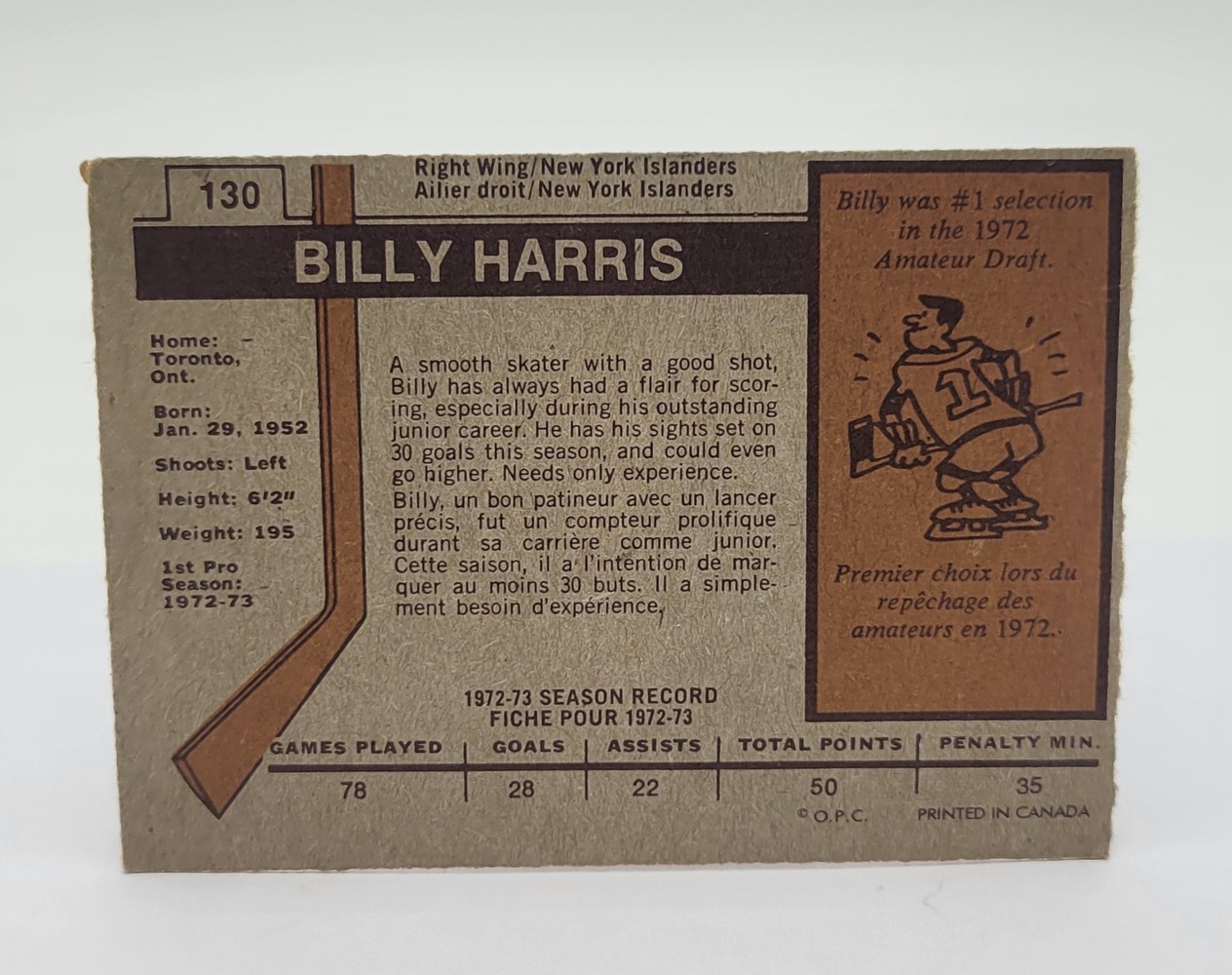 Discover the 1972-73 O-Pee-Chee Billy Harris card - a nostalgic gem from New York Islanders' history. This vintage delight transports you back to a time of simpler sport, showcasing Harris’s rookie season. Limited in quantity, this ethereal relic of the past, enshrined in radiant hues, encapsulates the very essence of hockey nostalgia.