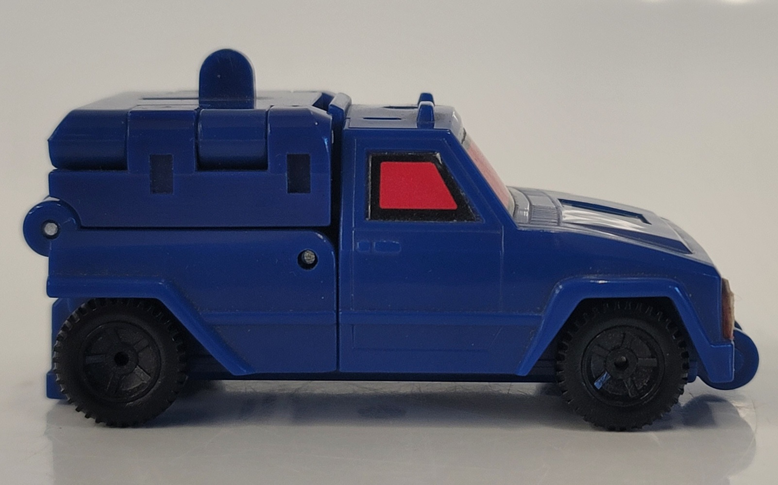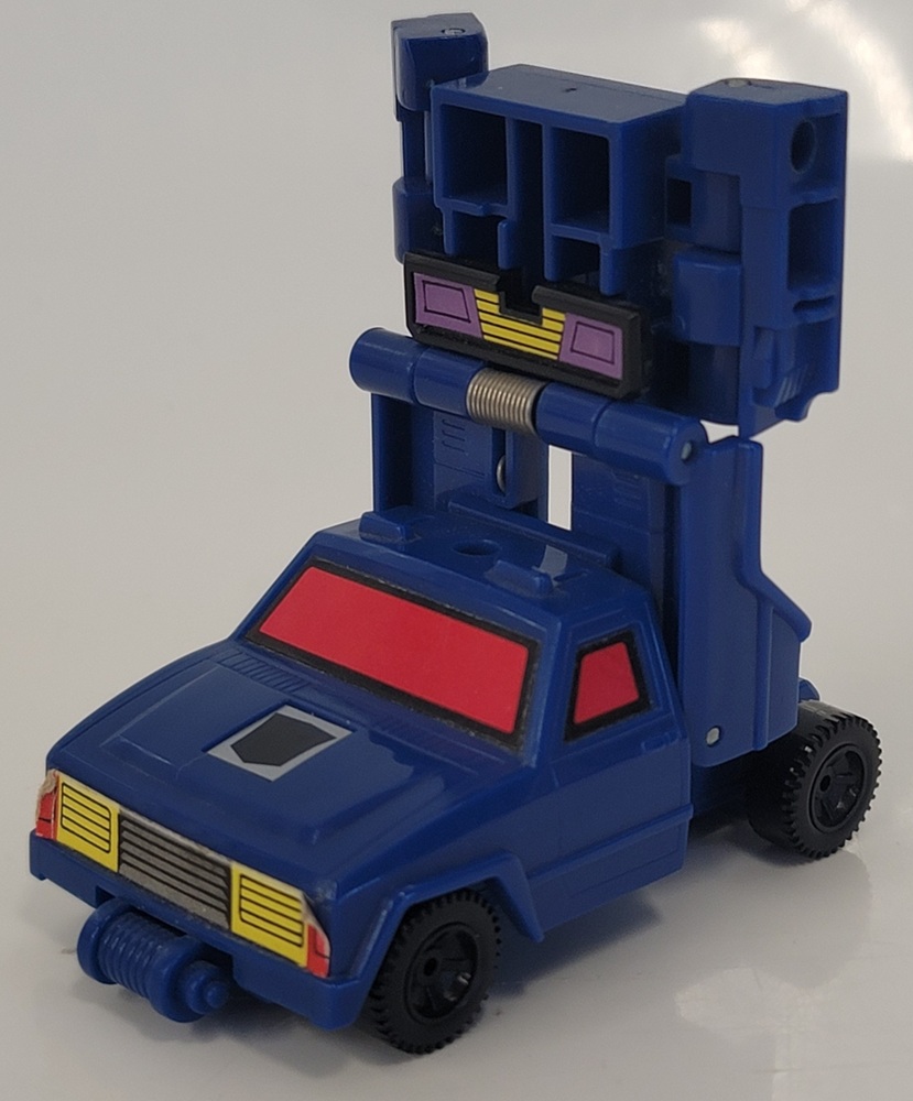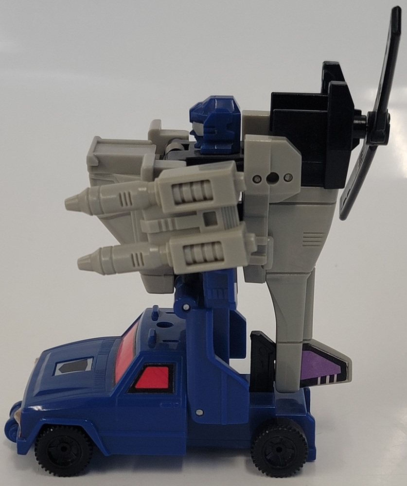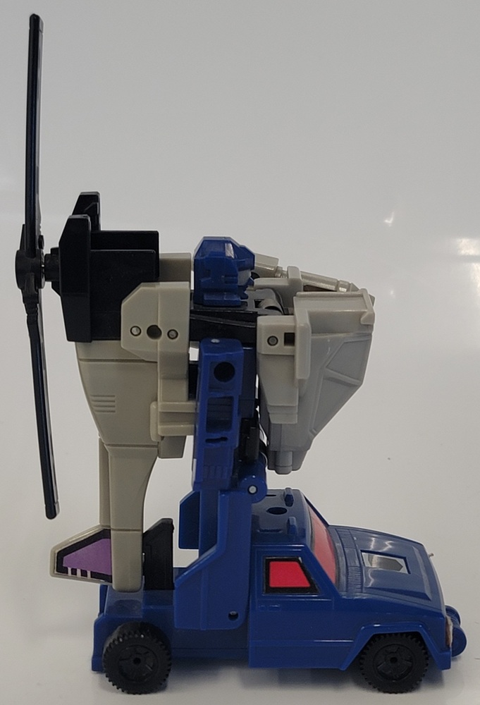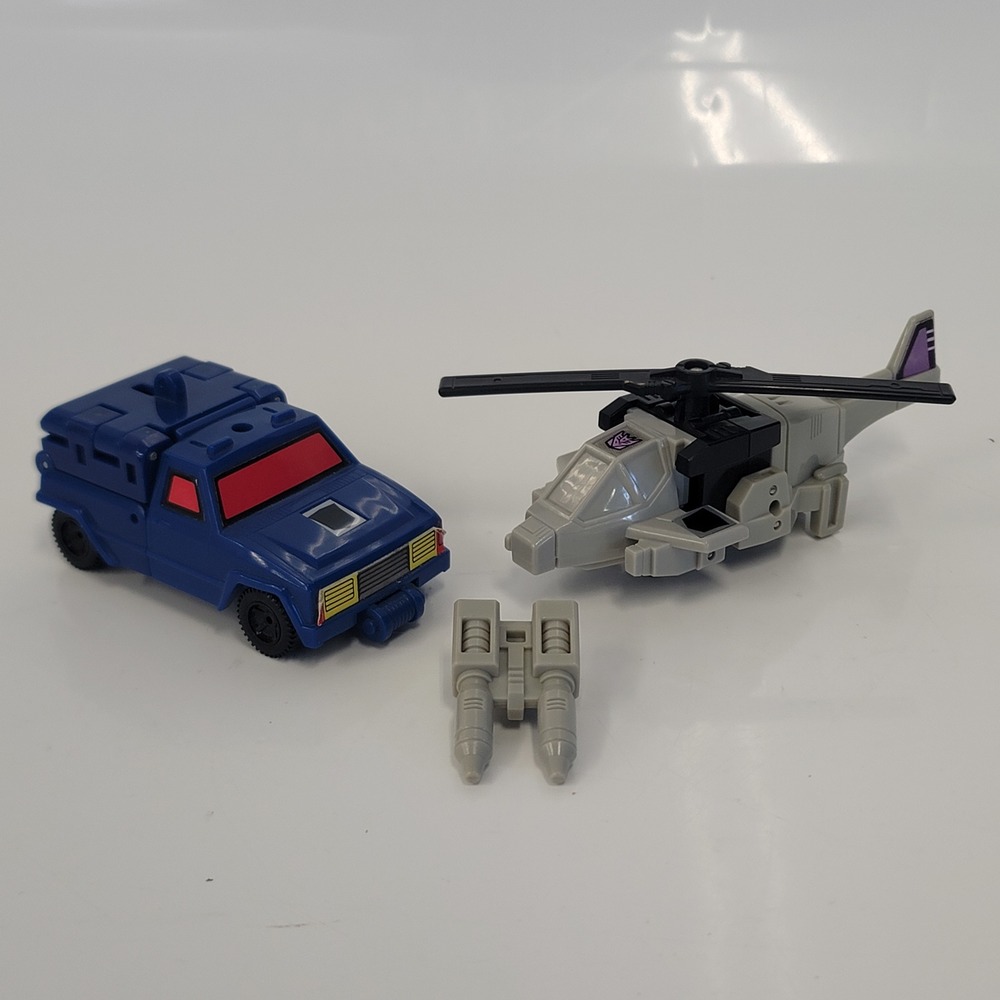 Of the two Duocons, Battletrap is the sane one. In contrast to Flywheels, whose two components are constantly bickering, Battletrap uses the two separate vehicles of his alternate mode in concert with each other. He likes to play with his target in the way a housecat might play with a rodent...that is, if said housecat happened to have a separate avian part of itself that could fly like a hummingbird.
