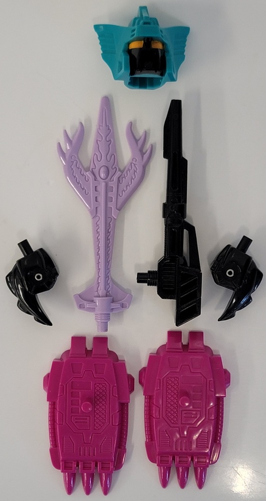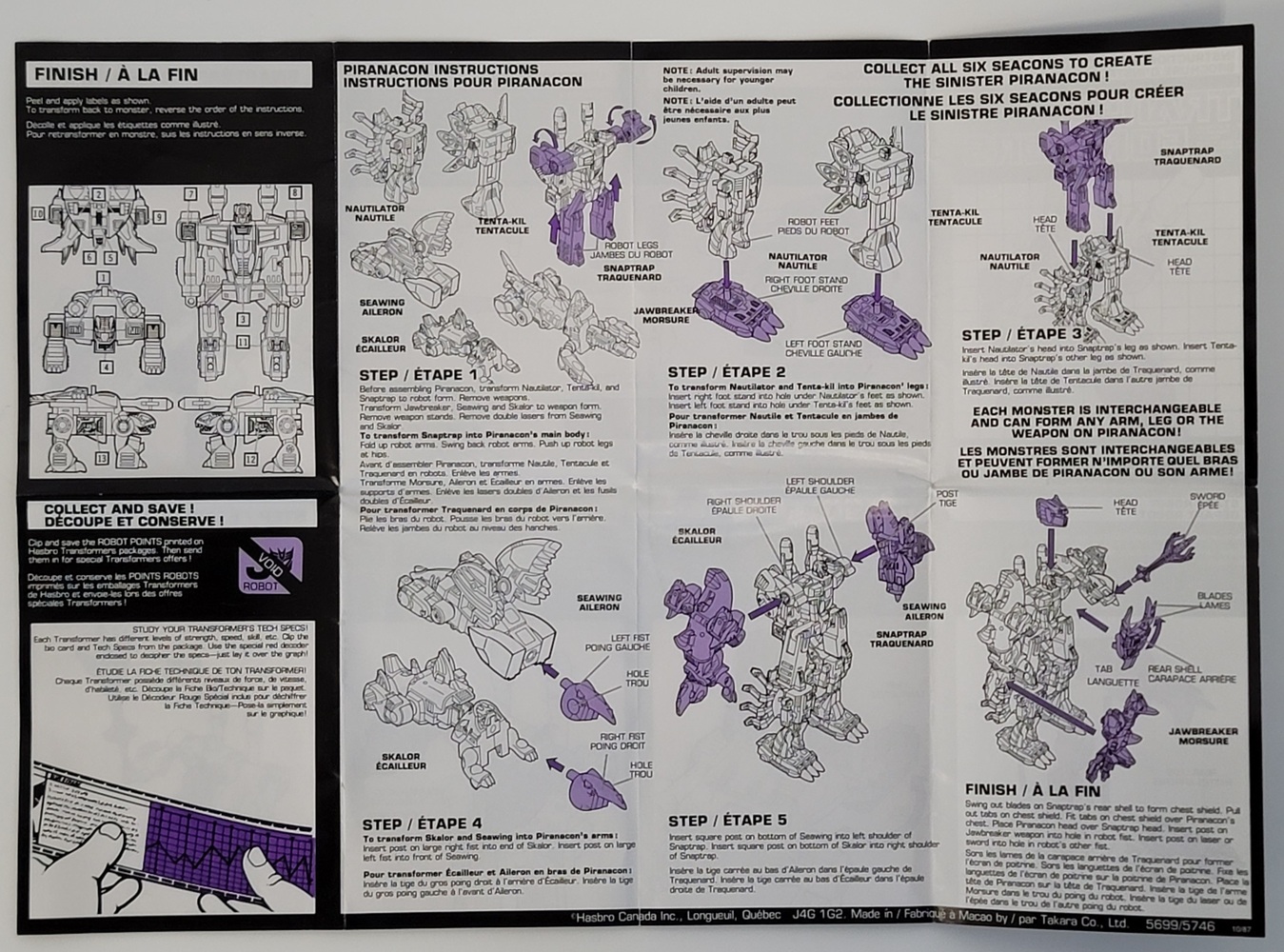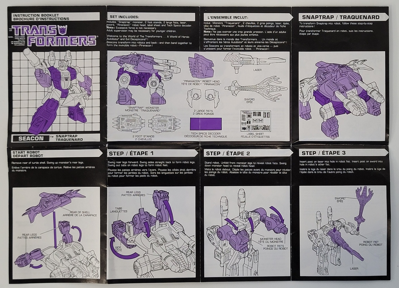 Set Includes; Snaptrap Monster, Piranacon Robot Head, Laser, 2 Large Fists, Sword, 2 Foot Stands and Manual