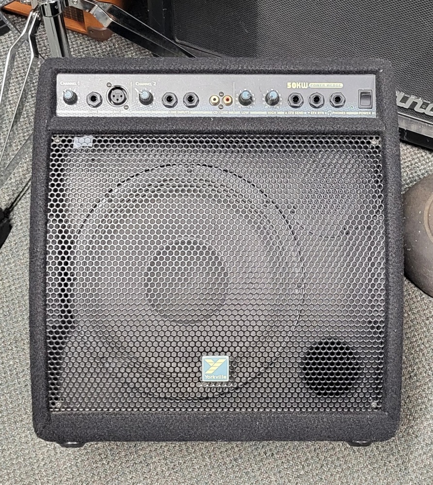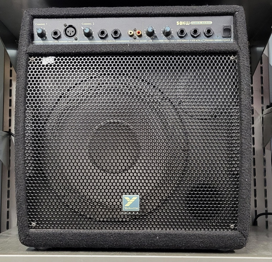 Yorkville's compact 50KW "omni-wedge" is designed for the professional musician or performer who needs a portable powered monitor or instrument/vocal amplifier that travels well. Two input channels with a selection of 1/4-inch, XLR or RCA inputs mean the 50KW can connect to virtually any source from PA or recording desk to keyboard instrument, recorded media source, acoustic/electric guitar and/or a microphone. Effects can be patched-in and the Headphone jack disconnects the 2-way 10-inch/horn-tweeter speaker system for silent practicing.
